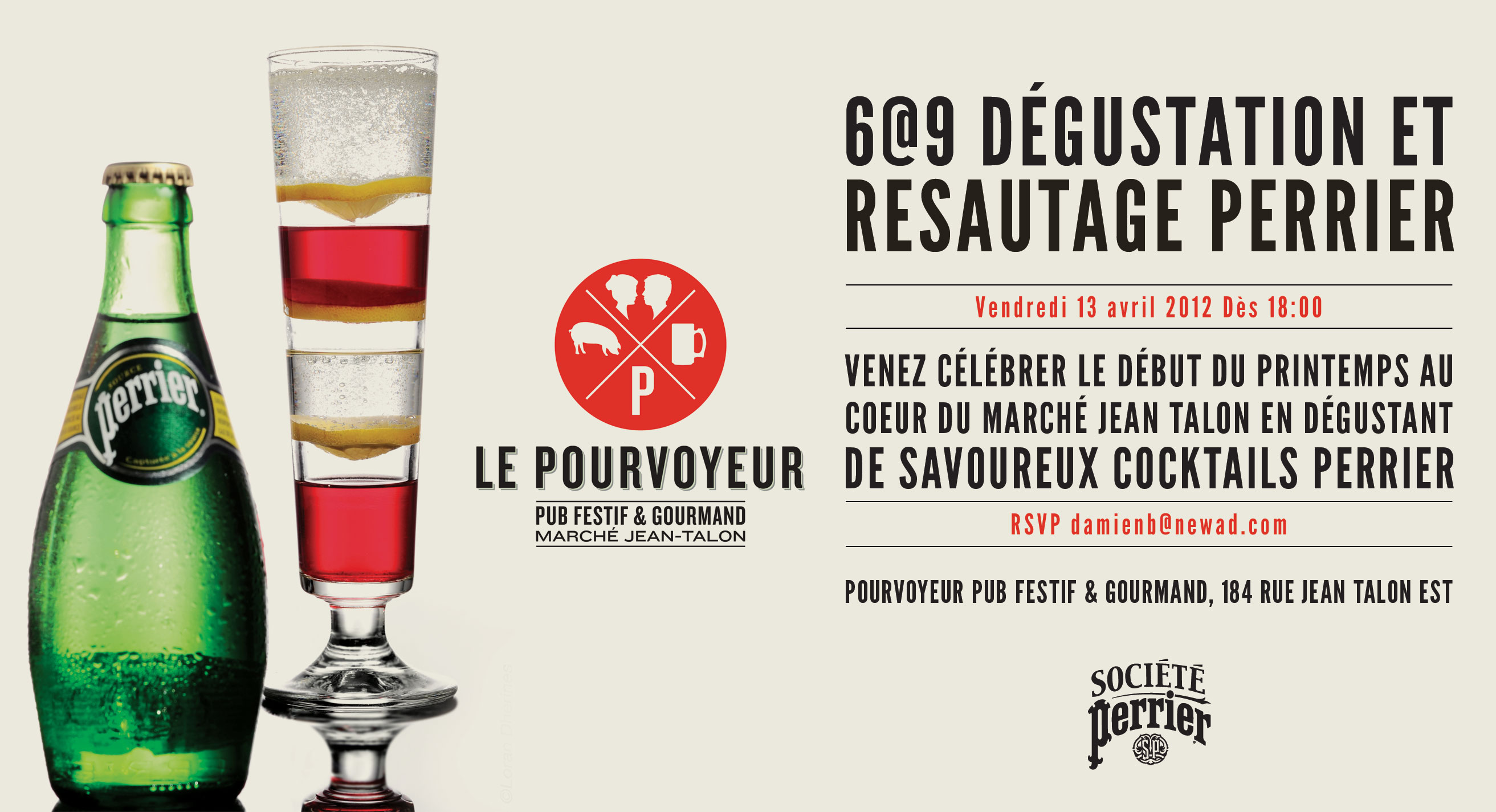 C’est le vendredi 13 avril, à 18:00, que la  Société Perrier vous donne ce nouveau rendez-vous au Pourvoyeur, 184 Rue Jean Talon Est  Montréal,  !