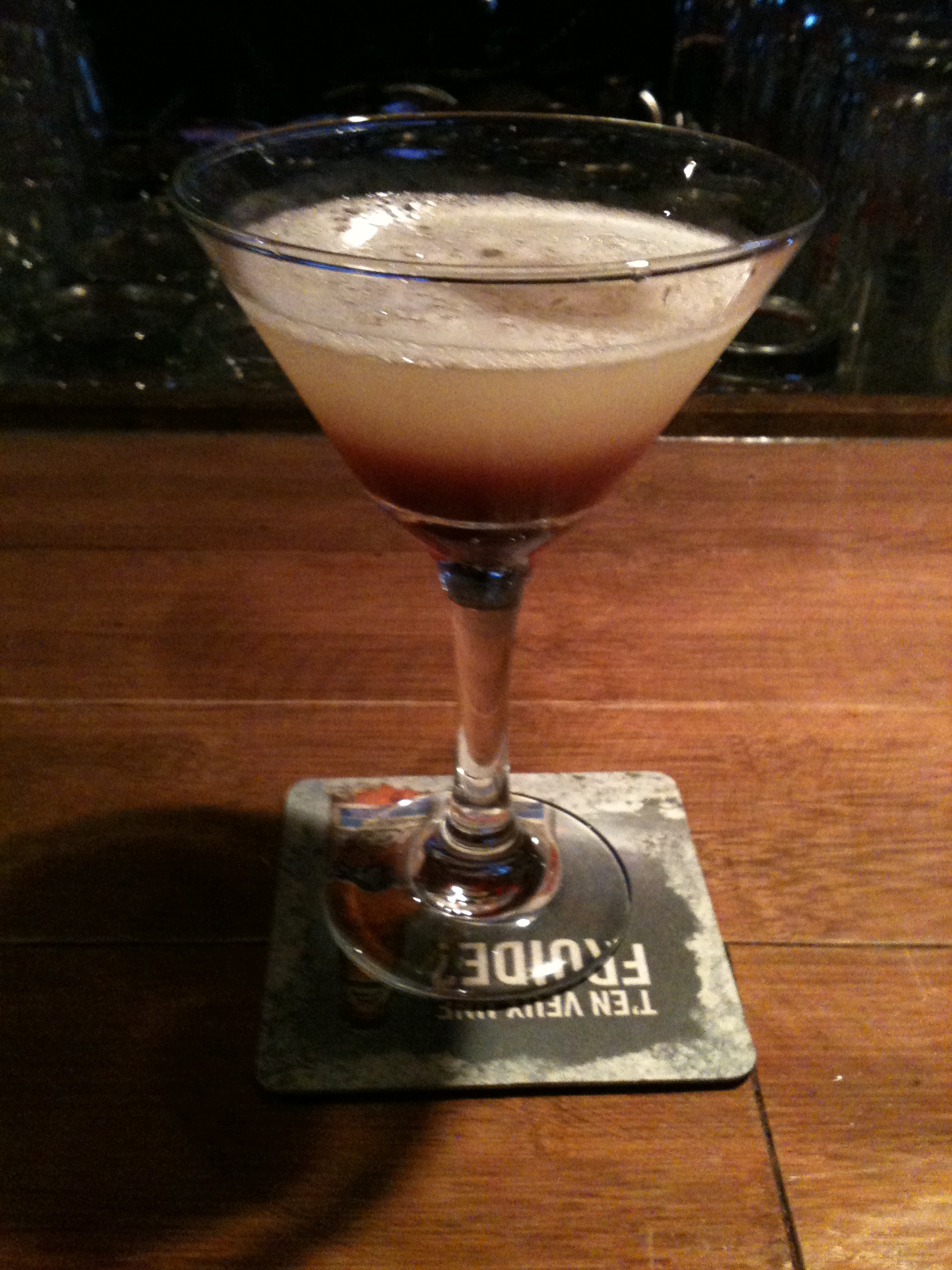 Bref je ne veux pas la contredire et je lui demande si elle peut me faire un cocktail de la maison. La barmaid me propose aussitôt un French Martini qui se compose de Vodka, de jus d’ananas et de Chambord. Comme elle me le vend bien je décide de suivre son conseil.