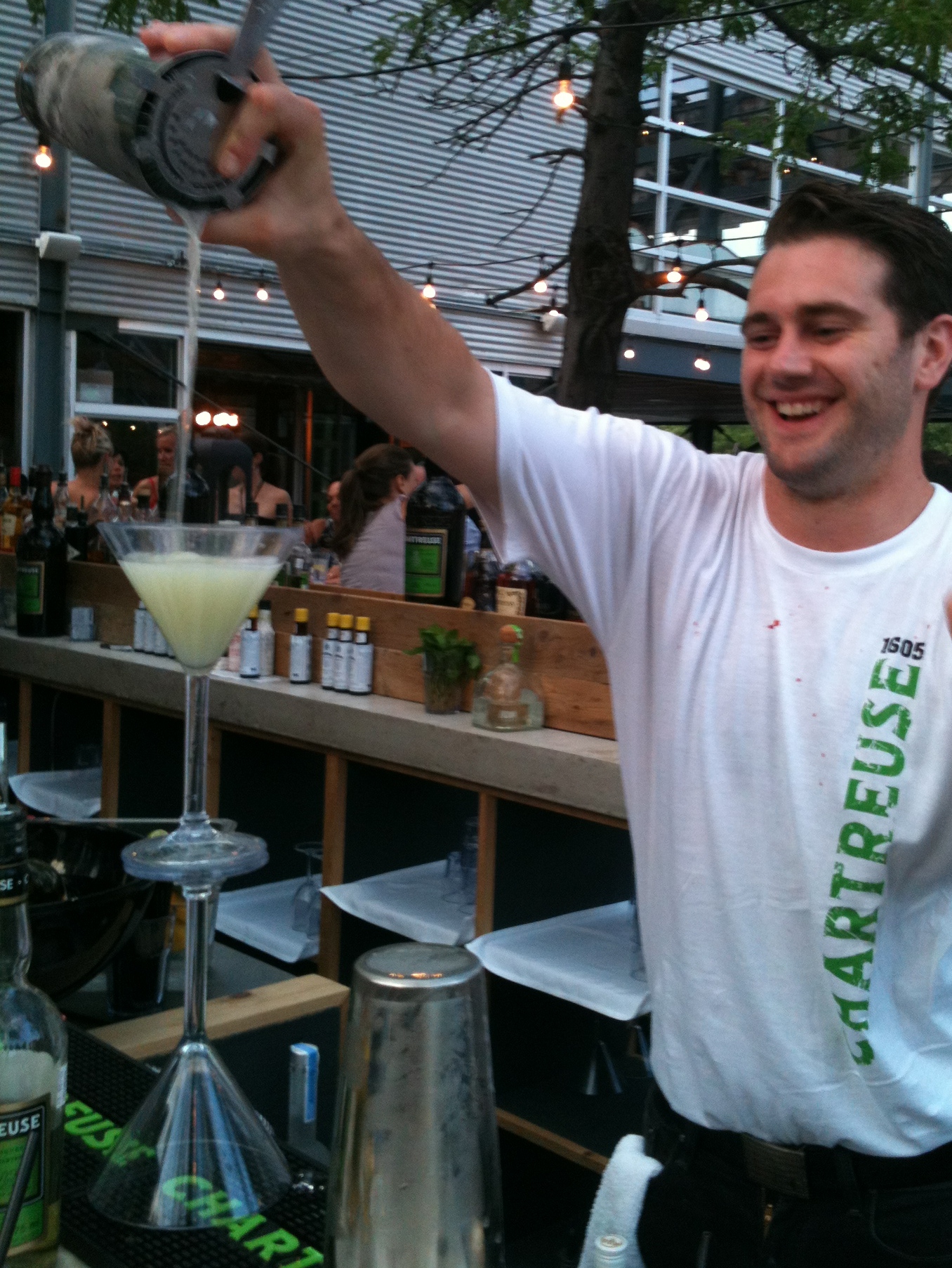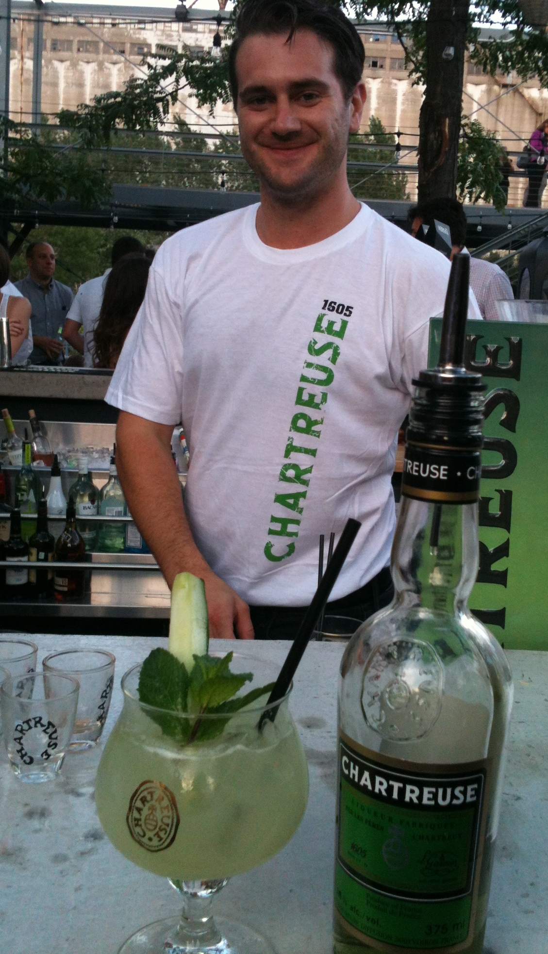 Je me dirige tout naturellement vers le bar, où je vois mon ami mixologue Lawrence Picard, qui confectionne des cocktails, et je dois avouer… bien alléchants! Je retrouve également d’autres amis mixologues qui sont venus eux aussi goûter les cocktails à base de Chartreuse!
