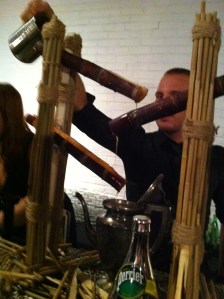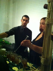 Le premier cocktail proposé pas Jonathan Homier, Antoine Galdès et Mélanie Aumais était vraiment spectaculaire, autant dans son originalité, sa confection et son goût : j’ai nommé le »Jamaïcain Cascade ».