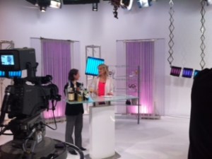 Un petit tour au maquillage, un coup de peigne plus tard, et me voici donc maintenant à rencontrer l’équipe de plateau et de faire la connaissance de la présentatrice Claude Thibault.