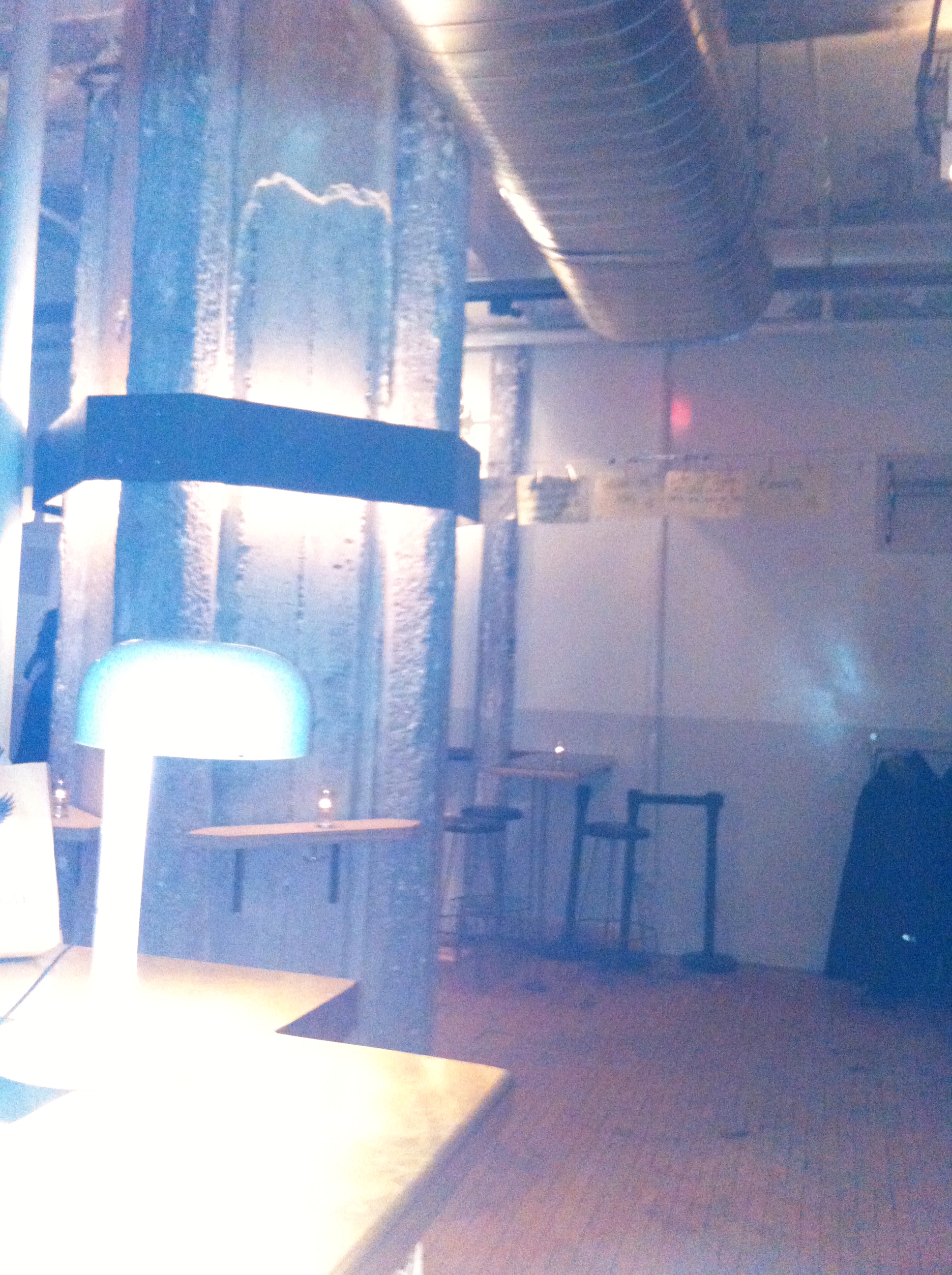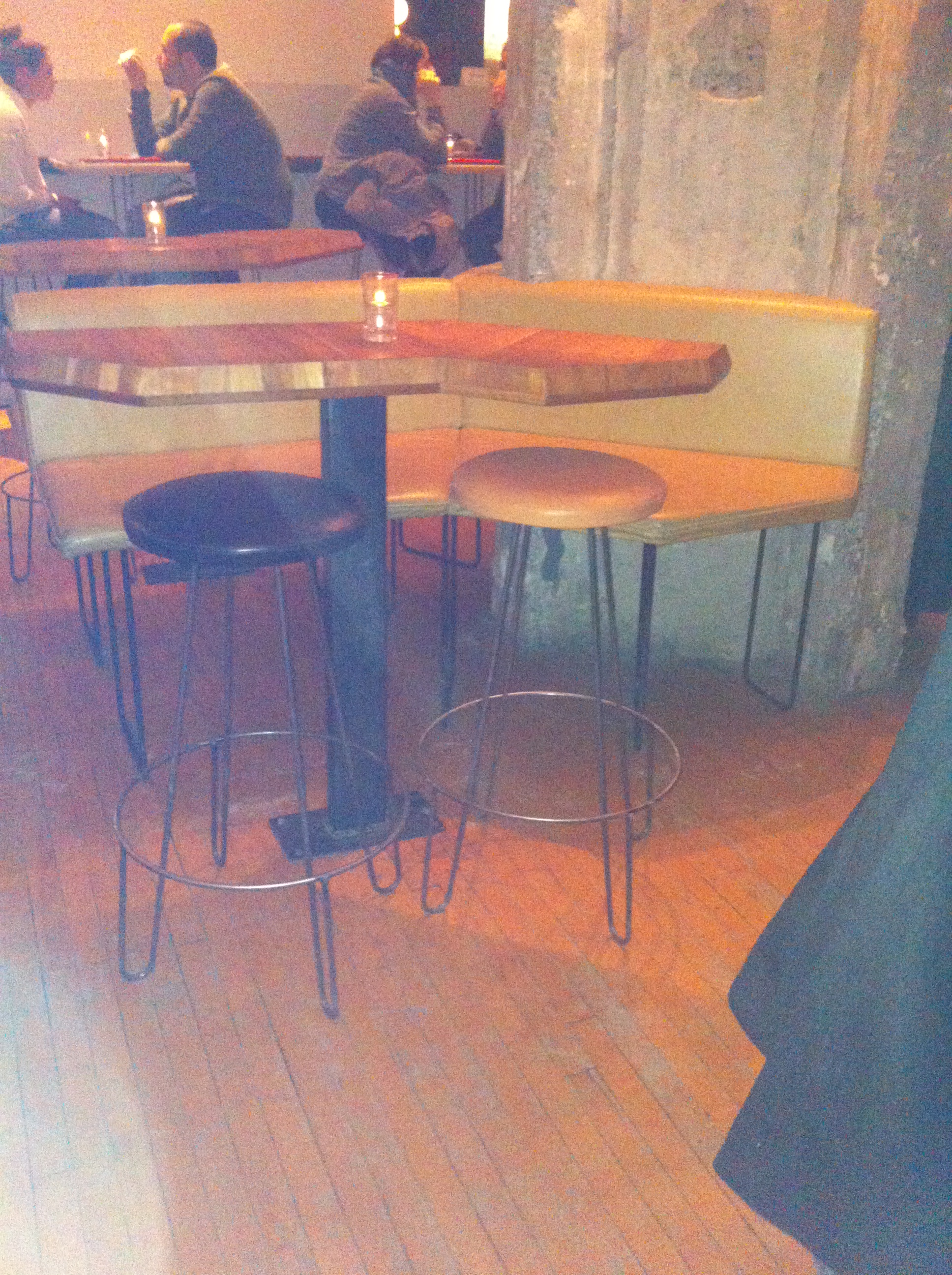 En rentrant dans la place, on se retrouve dans un mélange de décoration tout à fait surprenant. Une ambiance hyper urbaine avec les murs et le plafond en béton, qui se marient avec le zinc du bar, le bois du sol, et le cuir beige des banquettes… bref, la déco est super bien soignée, et perso j’adore ce mélange vintage et contemporain 🙂