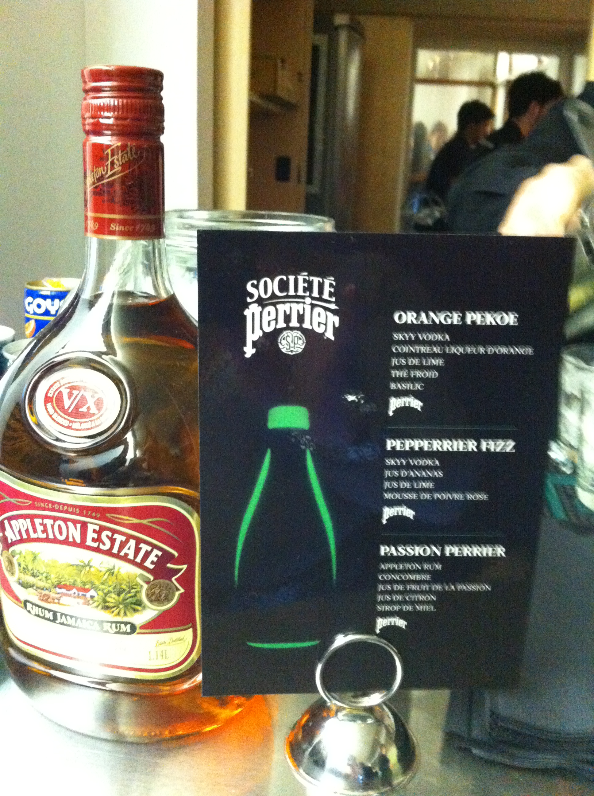 Avant de partir, je teste finalement le : Passion Perrier, qui lui est à base de Rhum Appleton Estate, de concombre, de jus de fruit de la passion, de jus de citron, de sirop de miel et de Perrier. Il est vraiment délicieux et super bien équilibré…hum 🙂