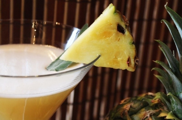 Déposez un quartier d’ananas, piqué d’une belle feuille de sauge, sur le bord de votre verre…