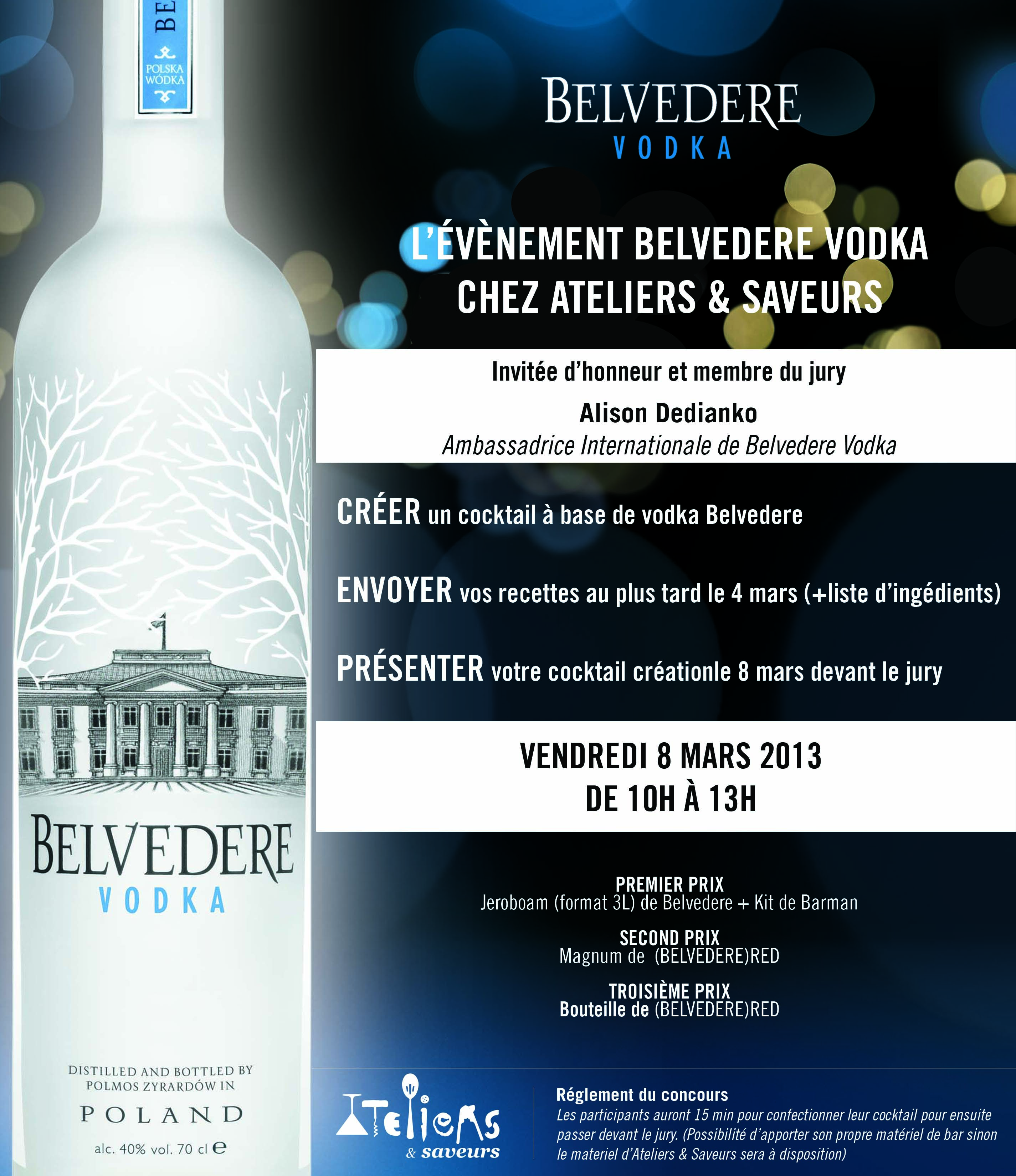 Le Vendredi 7 Mars dernier, nous avons eut la chance de faire un bel évènement chez Ateliers & Saveurs avec la célèbre Vodka premium : Belvedere… Pour cette occasion exeptionnelle, nous avons eut la chance de recevoir une invitée très VIP, la ‘’ Global Brand Ambassador ‘’, j’ai nommé Ali Dedianko, rien que ça, WoW !!!
