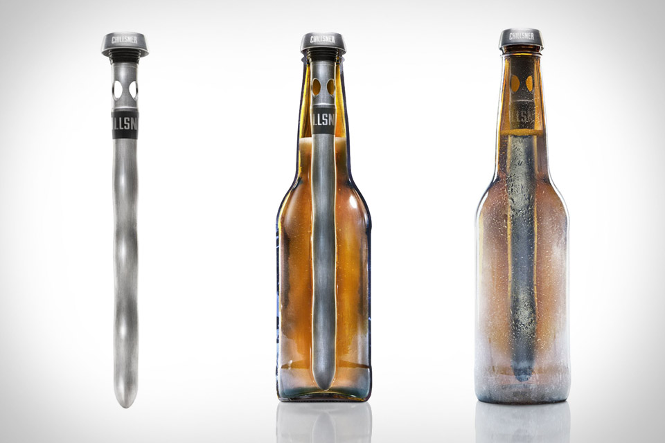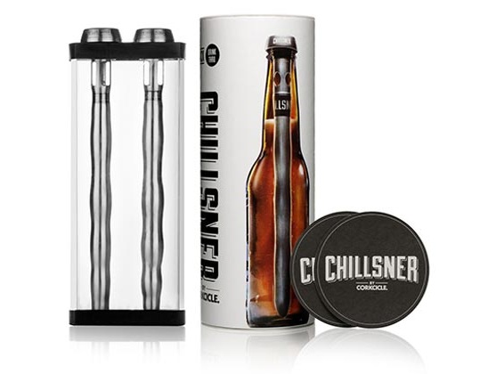Je vous avais parlé dans un article l’année dernière de Corkcicle, un gadget qui permettait de refroidir notre bouteille de vin en très peu de temps. Et bien cette année les créateurs ont pensé aux amateurs de bières et ont donc créé sous le même principe le Chillsner, un gagdget qui va maientenant pouvoir refroidir les bouteilles de bières….
