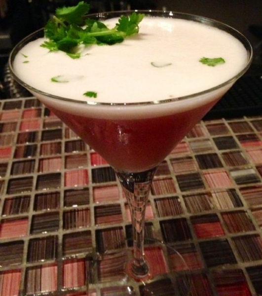 Dans un shaker, déposez les feuilles de coriandre coupées en 2 et versez le reste des ingrédients. Ajoutez la glace et shakez énergiquement pendant 8 à 10 secondes. Filtrez le tout, à travers une passoire dans un verre à cocktail.