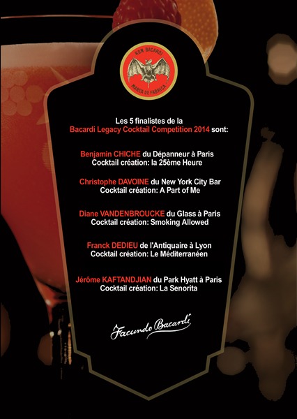 Et comptez sur moi pour vous donner le résultat le 17 février 2014, pour savoir qui représentera la France à la Finale Internationale de Bacardi Legacy Cocktail Competition 2014.