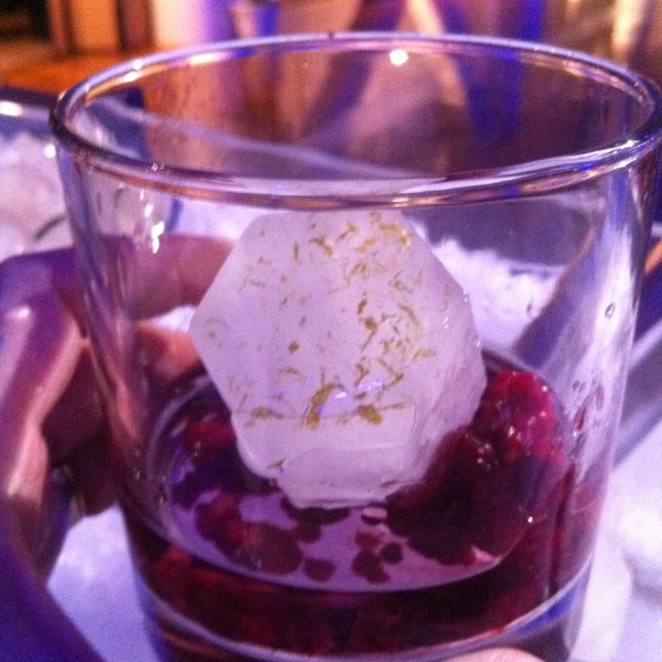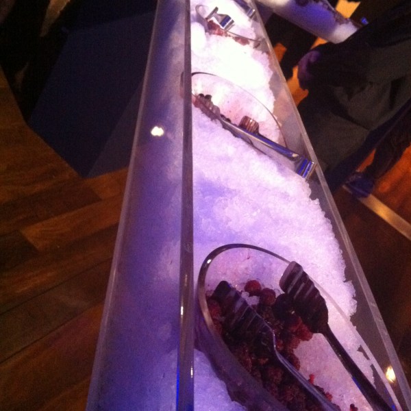Ensuite, Marie-Ève, m’a servi un verre de Vodka Quartz uniquement, car dans la salle, il y avait des stands pour agrémenter nous-mêmes notre vodka …Excellente idée !