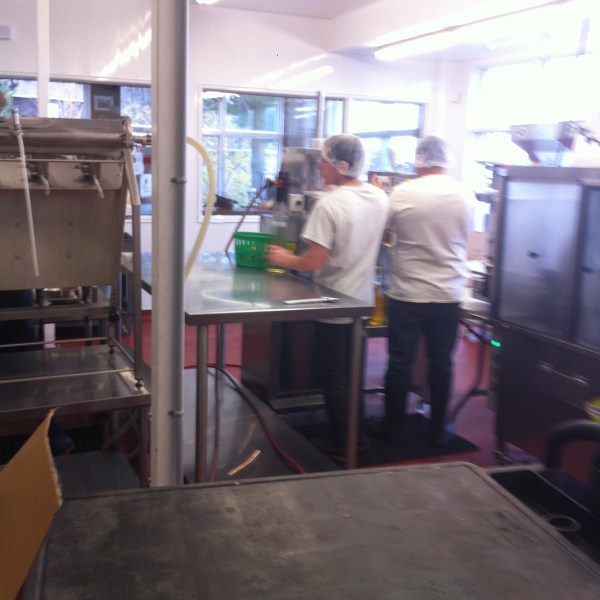 En entrant dans la salle d’embouteillage, je peux vous dire que ça va vite, très vite, et les 4 personnes qui sont là savent exactement ce qu’elles ont à faire.