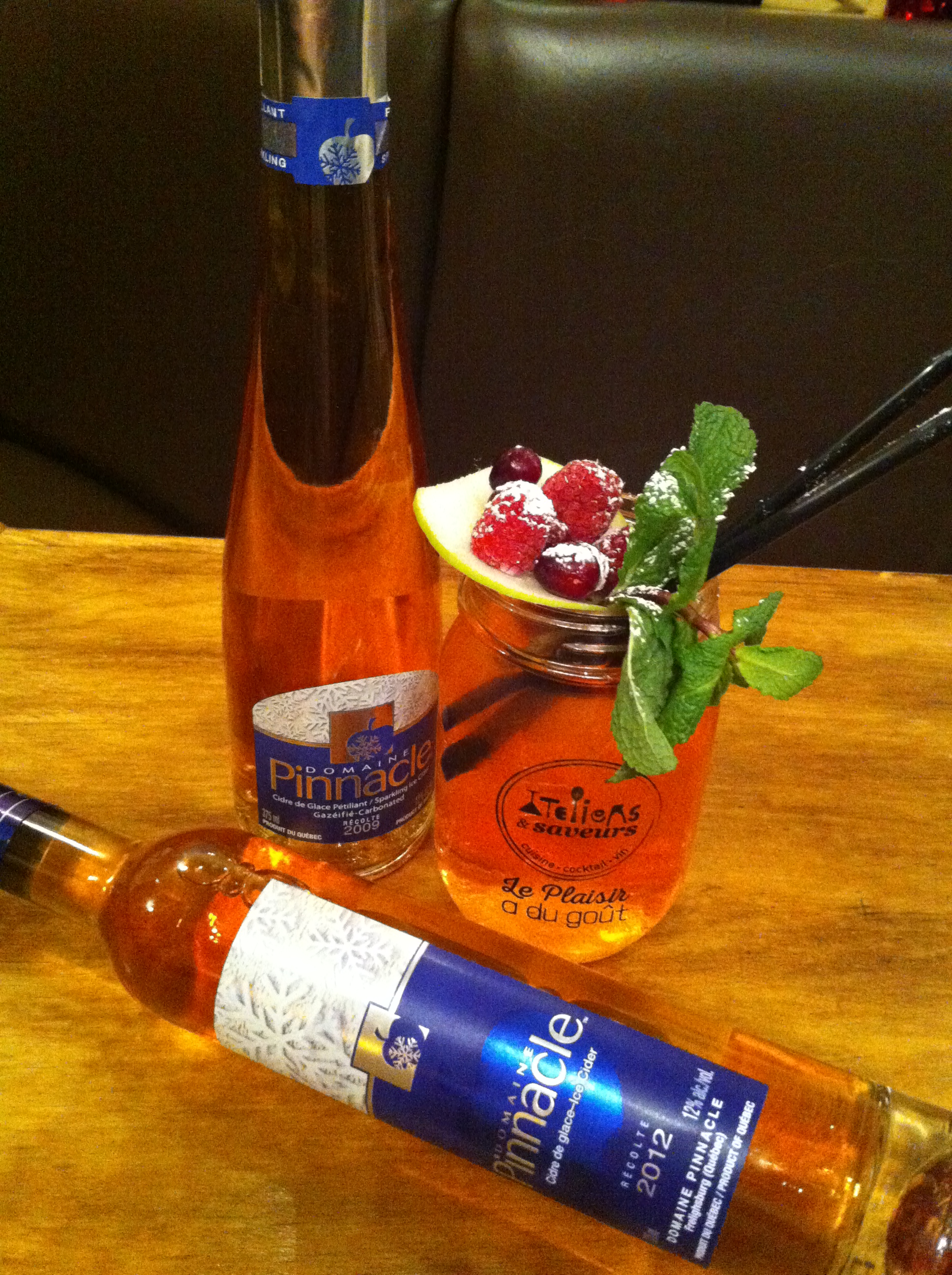 Histoire de vous donner une idée pour votre apéro, je vous propose de mettre un peu de bulles dans votre soirée, avec un cocktail à base de 2 cidres de glace du Domaine Pinnacle ( dont 1 qui est pétillant ), et dont la réputation de ses produits n’est plus à faire !