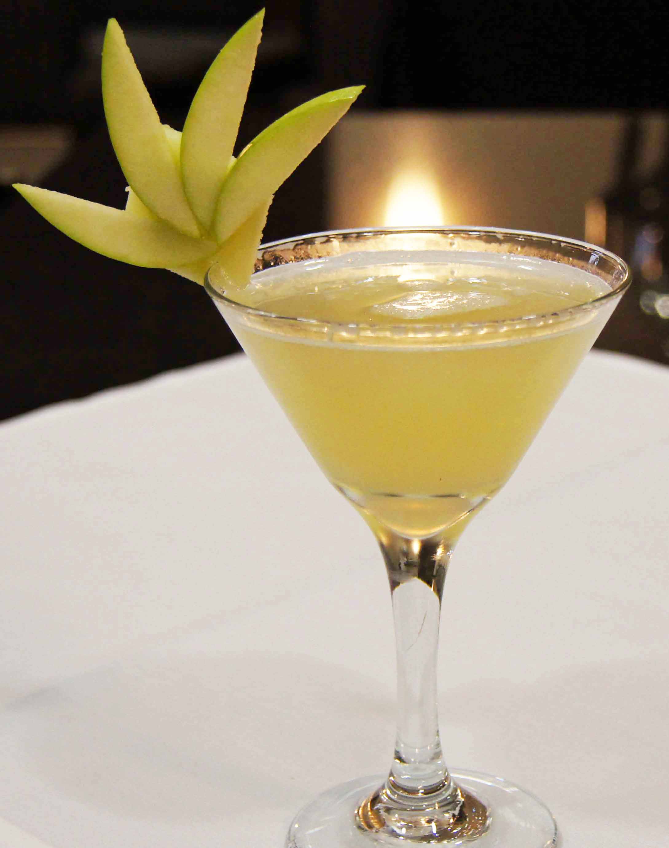 Nos cocktails arrivent enfin, quelle n’est pas ma surprise de voir le cocktail de mon mari avec une simple tranche de pomme sur le côté du verre…. Le goût du cocktail est complètement insipide, et pour cause, lorsque j’avais créé de cocktail, j’y mettais du jus de pomme Granny Smith, qui apportait l’acidité nécessaire au cocktail. Sauf que maintenant il est confectionné avec du jus de pomme qui sort directement du ‘’ gun ‘’, et donc qui est ultra sucré et franchement pas bon. Bref, ce n’est pas vraiment une réussite !