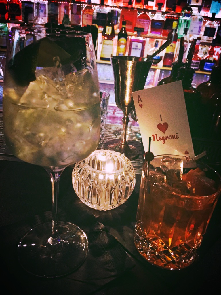 Nos cocktails arrivent enfin, et je suis plus que bluffée…c’est beau, c’est bon, la présentation des cocktails est raffinée jusqu’au détail de la carte de jeu sur le cocktail…WOW.