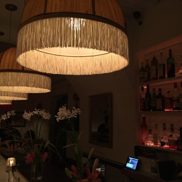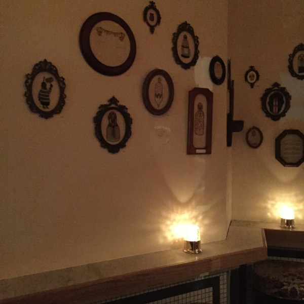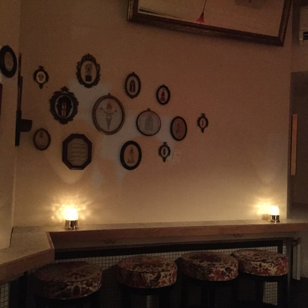 Le bar est tout blanc, il y a des voûtes au plafond, des lustres ronds au dessus du comptoir, des bouquets de fleurs et des matriochkas en arrière du bar…. Bref c’est super cute et intime !