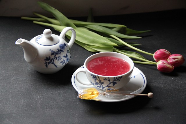 Filtrez avec une passoire dans une tasse à thé.