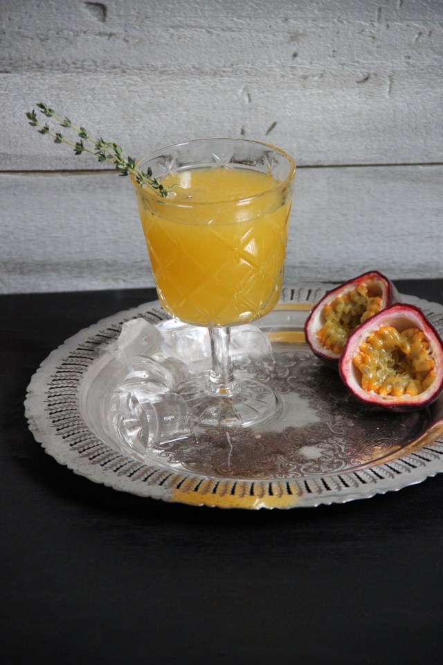 Slappez une branche de thym et l’autre demi- fruit de la passion.