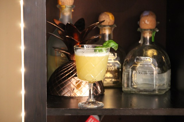 Slappez une belle tête de basilic que vous déposerez sur le dessus de votre verre.