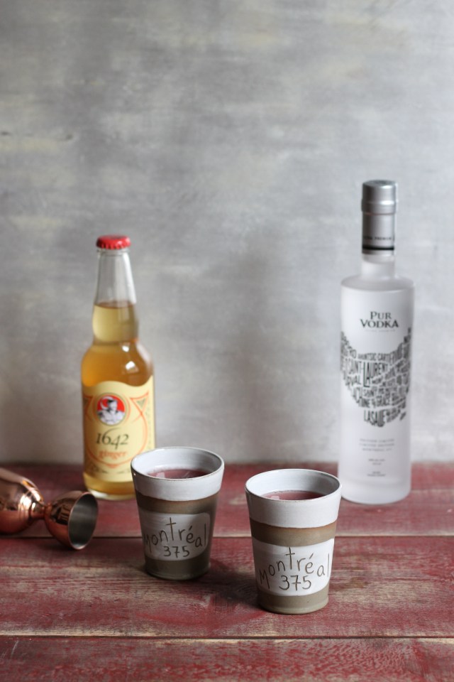 Certaines distilleries de Montréal ont fait une édition spéciale de leurs spiritueux pour le 375ème, et c’est pour cela qu’aujourd’hui je vous propose un cocktail à base du gin Cirka édition 375ème ainsi qu’à la vodka PUR édition 375ème, pour marquer l’année 2017.