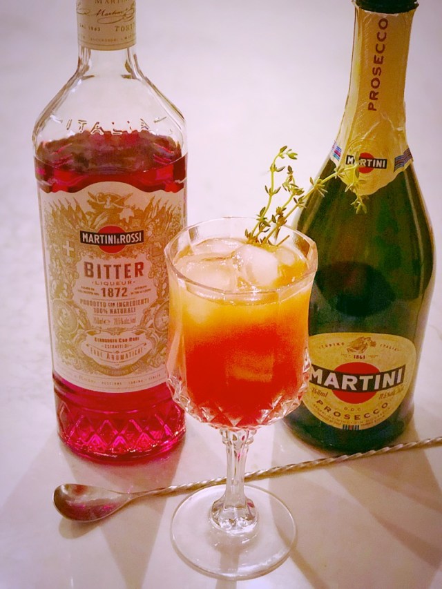 Cette semaine j’ai décidé de vous faire voyager en Italie, et qui dit Italie, dit Prosecco et Spritz, non ? alors mon cocktail est une variante d’un Spritz à base de Prosecco Martini et aussi de Martini & Rossi Bitter… une liqueur 100% naturelle à base de plantes aromatiques…. Donc si vous aimez les Spritz, Négronis ou Américanos vous allez l’adorer.