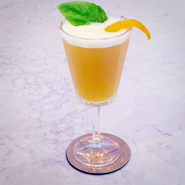 Slappez une belle feuille de basilic et exprimez un gros zeste d’orange..