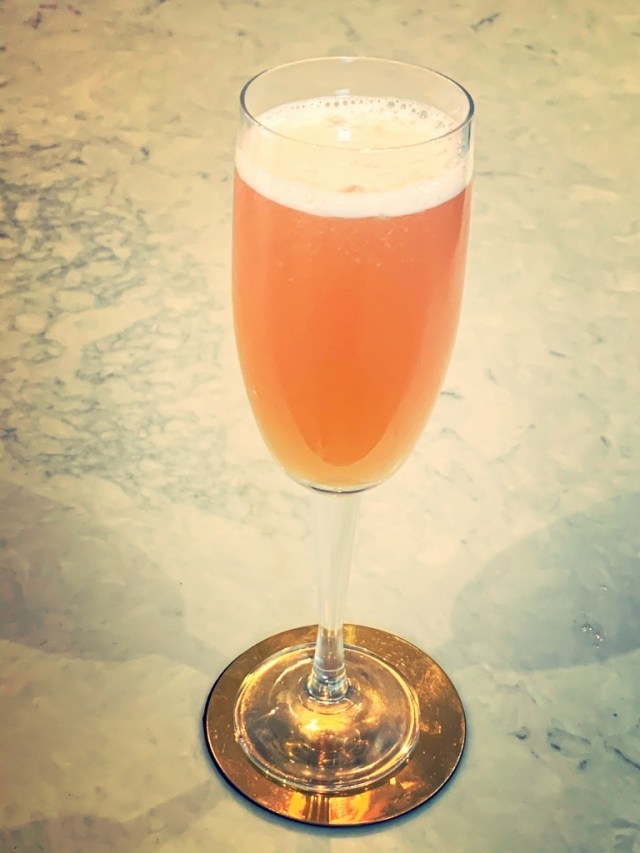 J’ai donc choisi le Prosecco Mionetto pour mon cocktail, car je trouve très savoureux avec des notes de pêches….. que va rappeler le ruban de couleur orange sur l’étiquette.