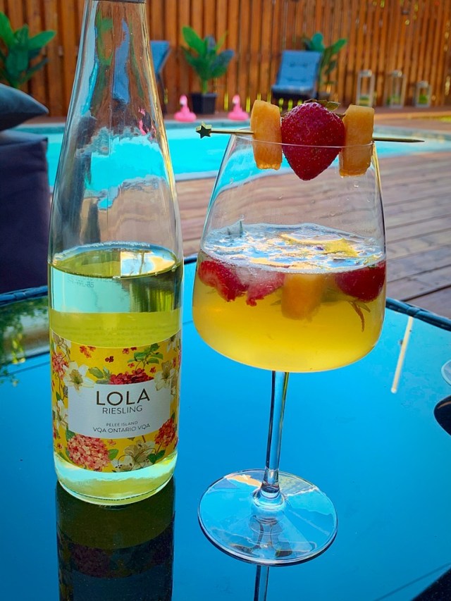 Comme tous les mardis, hier soir j’étais dans l’émission Plaisirs Gourmands 100% virtuelle. Cette semaine c’est un cocktail estival que je voulais proposer. J’ai donc décoder de confectionner une version de la fameuse sangria blanche et d’utiliser comme vin blanc, un Riesling de l’Ontario, le Lola !