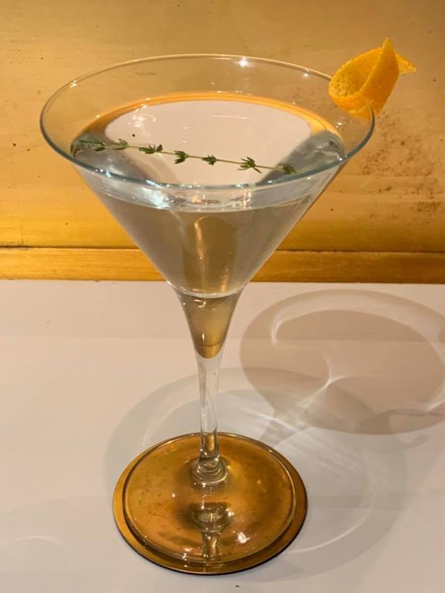 Slappez une branche de thym et mettez-la dans votre verre et mettez un zeste d’orange.