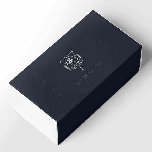 J’ai donc choisi la boîte à cocktails du 4e Mur, car je me suis dit que ça serait super le fun que de se faire une ambiance speakeasy chez soi ! et c’est donc le COFFRET EDITION ELIXIRS, que j’ai choisi. Et déjà en partant, c’est juste trop beau avec son papier glacé noir, et dessus y est noté ce que le coffret contient à savoir :