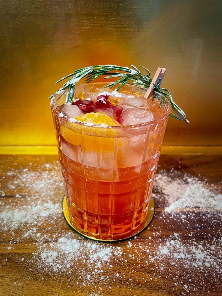 Servez dans des verres Old Fashioned, ajoutez un peu de glace, une cuil à thé de billes de grenade congelées, quelques quartiers de mandarines congelés et mettez ( au choix), le vin blanc Chardonnay MERF, et topez avec le SanPellegrino Melograno & Aranciata. Ajoutez une branche de romarin accrochée sur le bord du verre et saupoudrez-la de sucre glace….