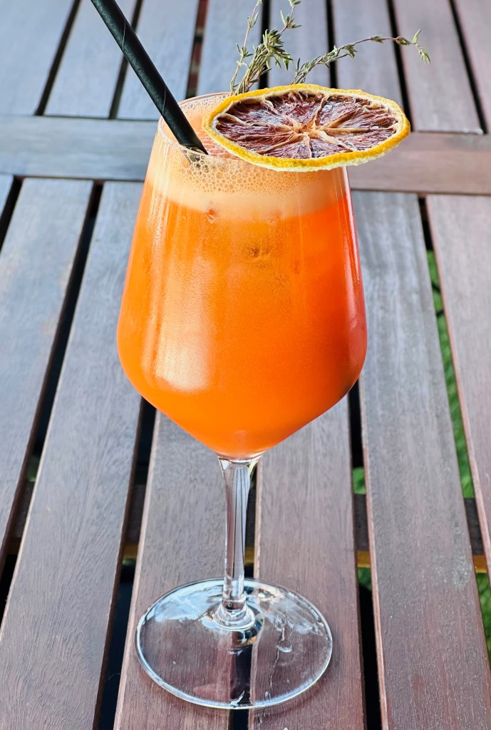 Je suis donc partie d’un cocktail que tout le monde connait et adore, le Spritz et j’ai décidé de lui donner une twist assez sympa, pour pouvoir y mettre des légumes et de le faire en version alcoolisée et en version non-alcoolisée. J’ai donc travaillé le Chandon Garden Spritz de la maison Domaine Chandon et aussi la bulle sans alcool Nozeco et l’Apéritivo sans alcool Vibrante de la maison Martini, et pour le légume, comme nous rentrons dans la saison automnale j’ai utilisé du jus de carotte…. Et je dois avouer que les 2 recettes ont été fortement appréciées sur le plateau de radio !